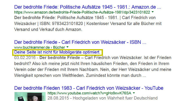 Die Buchkammer ohne Responsive Design in der Google-Suche