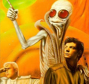 Doch keine Angst, trotz der hohen Seitenzahl ist zumindest bei mir beim Lesen zu keiner Zeit Langeweile aufgekommen – ganz im Gegenteil, David Brin gelingt es die verschiedenen exotischen außerirdischen Kulturen so überzeugend auszumalen und in eine äußerst spannende Handlung einzubetten, dass man das Buch am liebsten gar nicht mehr aus der Hand legen würde. Nicht umsonst ist “Entwicklungskrieg” zu einem echten Klassiker im Genre avanciert und gehört – da leider schon lange vergriffen – zu den begehrtesten Gebrauchtbüchern überhaupt.