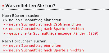 Da uns das weniger interessiert, weil wir ja via Suchauftrag nach neu eingestellten Büchern suchen, möchte ich das Thema auch nur am Rande erwähnt haben.