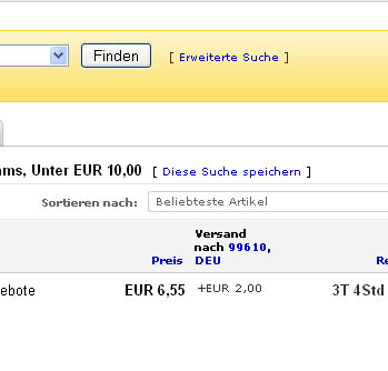 Ich achte immer darauf, das der Reiter keine Auktionen gesetzt ist, da Eurobuch sonst auch in den laufenden Auktionen bei ebay sucht. Diese Angebote können wir nicht sofort erwerben, da die Auktionen erst nach einer bestimmten Zeit enden, sie interessieren uns in erster Linie also nicht.