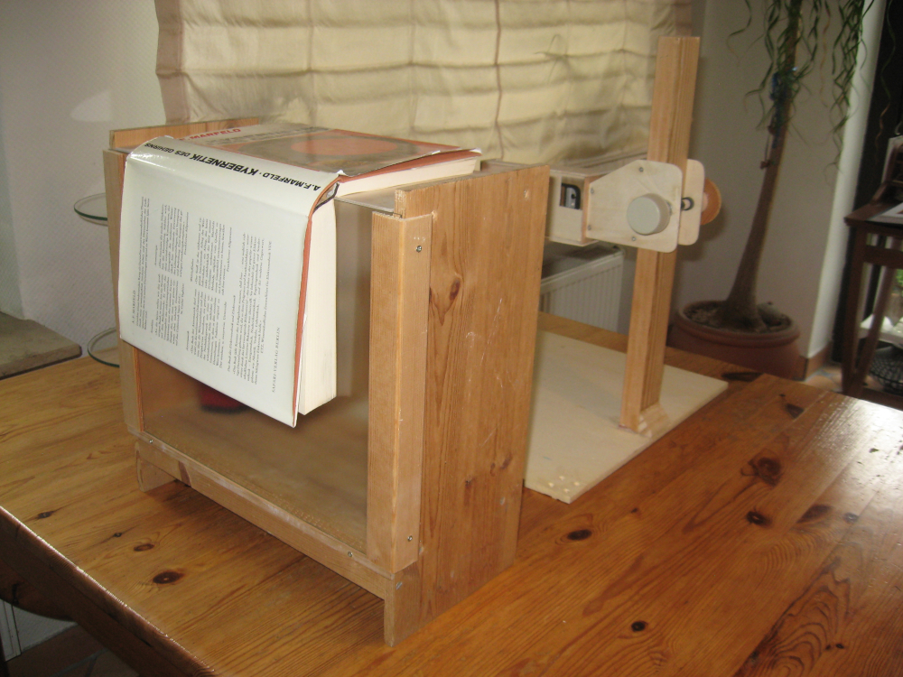 mein Buchscanner ist seit ca. einem halben Jahr fertig. Ich habe inzwischen ca. 2000 Seiten gescannt. Ein erster Erfahrungsbericht ist somit möglich.