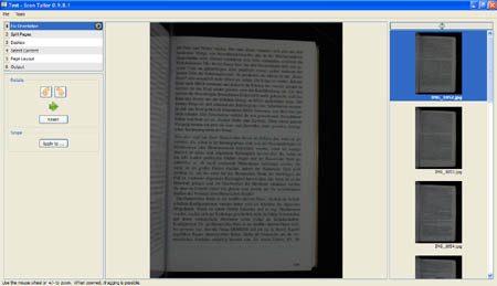 Ich empfehle, erst einige wenige, sagen wir 10 Seiten zu bearbeiten, um erste Erfahrungen mit Scan Tailor zu sammeln und nicht gleich ein komplettes Buch zu laden, um sich dann eventuell über das Ergebnis und die vertane Zeit zu ärgern.