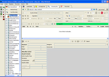 Auf die vielen anderen Funktionen von Munnin, wie das Suchen und Auffinden von Last-Minute Auktionen, Tippfehlerauktionen, Angeboten mit 0 Geboten die bald enden oder Angeboten in ihrer Nähe etc., möchte ich hier nicht näher eingehen. Probieren Sie Munnin einfach in der kostenlosen Light Version so lange sie wollen aus. Bereits mit dieser Version können Sie bis zu 3 Suchfavoriten abspeichern und max. 30 Artikel beobachten.